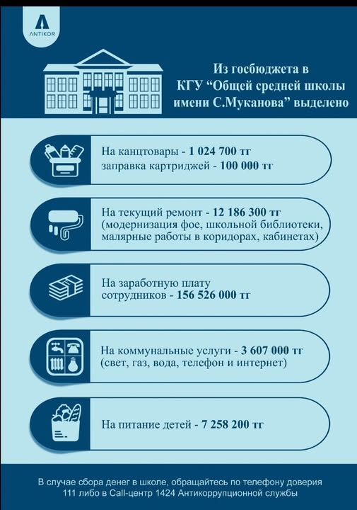 ҚР Сыбайлас жемқорлыққа қарсы іс -қимыл агенттігінің Атырау облысы бойынша департаменті С.Мұқанов атындағы жалпы орта мектебімен бірлесіп, 2023-2024 оқу жылына бөлінген бюджеті туралы жадынаманы ұсынады.